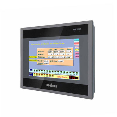 Koneksi HMI 1 port unduhan HMI, 1 port USB 2.0 1 lubang RS232 PLC 1 port USB Mini tipe B, 1 port Rs232 (port Program, juga dapat digunakan sebagai port COM) 1 port COM Rs485 atau 2 Rs485 (satu diubah dari port Rs232 default) Perangkat lunak HMI Perangkat lunak pemrograman CoolMayHMI HMI PLC Kompatibel dengan Mitsubishi GX Developer8.86 danKARYA 2