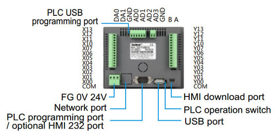 PLC programming port: two PLC programming ports (MiniB type usb port / RS232), PLC program can be downloaded through 232 programming line or USB cable download
